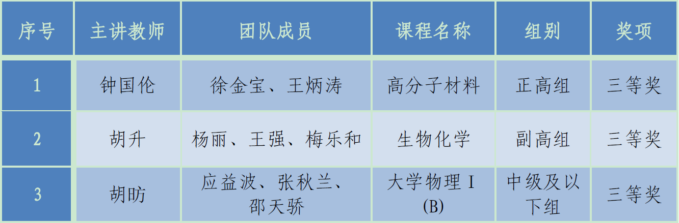 从2008年开始钟国伦教授团队对《高分子材料》课程进行教学改革,至今已经进行了14年的实践,从原来的以教师讲授为主,逐步改成增加实践元素,向以学生为中心的主动学习转变,取得了好的效果。团队教师多年来一直承担高分子材料与工程、化工、包装工程专业的主要课程,承担省级一流课程和市级教科规项目各1项,校级教研项目4项,获得过2012年浙江大学校级教学成果二等奖、2014年浙江大学宁波理工学院教学成果一等奖、2015年宁波市第七届教学成果三等奖(高等教育类)、2014年度宁波市教育科研优秀成果二等奖、2016年浙江大学校级教学成果一等奖等奖项。2022年浙江省第二届高校教师教学创新大赛三等奖,指导学生参加国家级和省级竞赛获二等奖各一项,学生为第一发明人获授权发明专利多项。