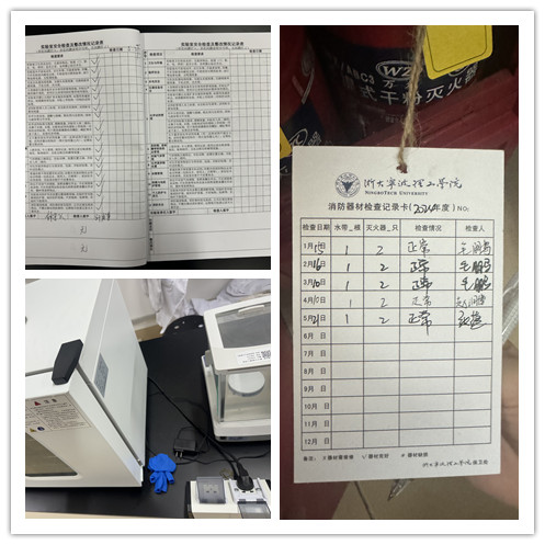 2、ND118实验室:灭火器未按规定定期检查有效情况,《实验室安全检查及整改情况记录本》未定期记录,加热设备未使用时插头未拔掉。