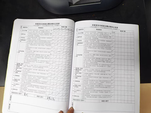 1、ND203实验室:实验室安全检查及整改情况记录本未定期记录。